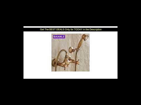 Buy Wall Mounted Antique Brass Shower Set Faucet+Bath Tub Mixer Tap+Double Handles Hand Held Shower